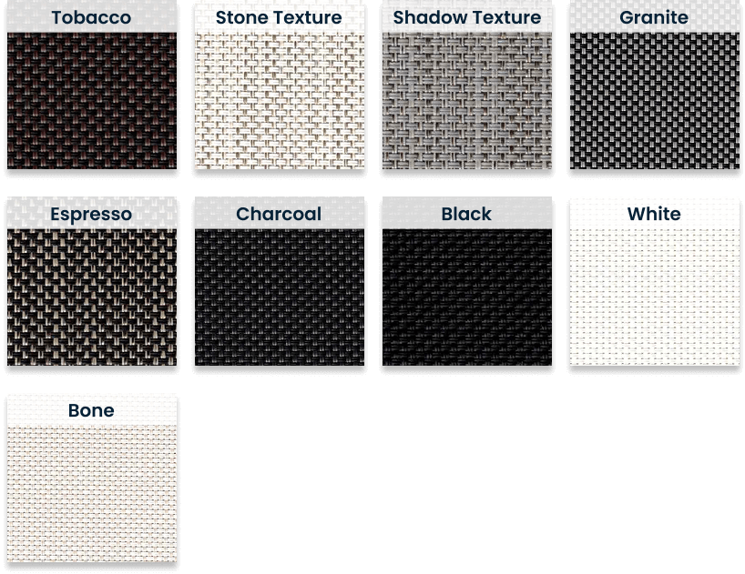 Choose from a wide variety of materials and colors for your shade screens. Fenetex offers a plethora of options to best match your home, business, or design idea.